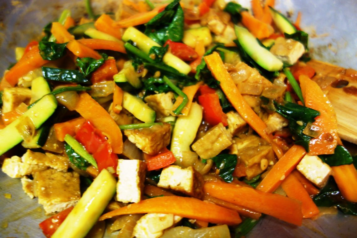Note: No oil required, the sauce itself has the fat (good fat) you need to stir fry chicken and veges.